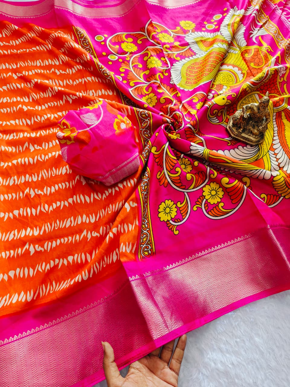 Heavy Matka silk saree with leheriya print and jacquard dolby sequence pattu border on allover saree